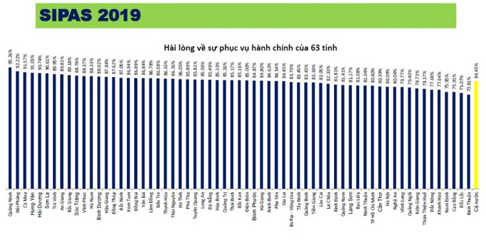 Kết quả cụ thể SIPAS năm 2019, đạt được có 84,45% người dân, tổ chức hài lòng về sự phục vụ nói chung của cơ quan hành chính Nhà nước ở địa phương (tăng gần 1,5% so với năm 2018). Tỷ lệ người dân, tổ chức hài lòng về tiếp cận dịch vụ là 86,48%.